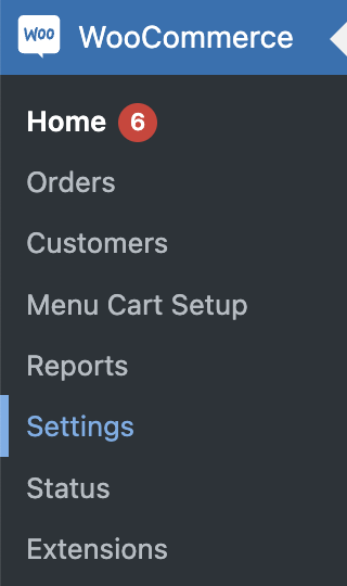 1. In the side menu, click on 'WooCommerce' followed by 'Settings'